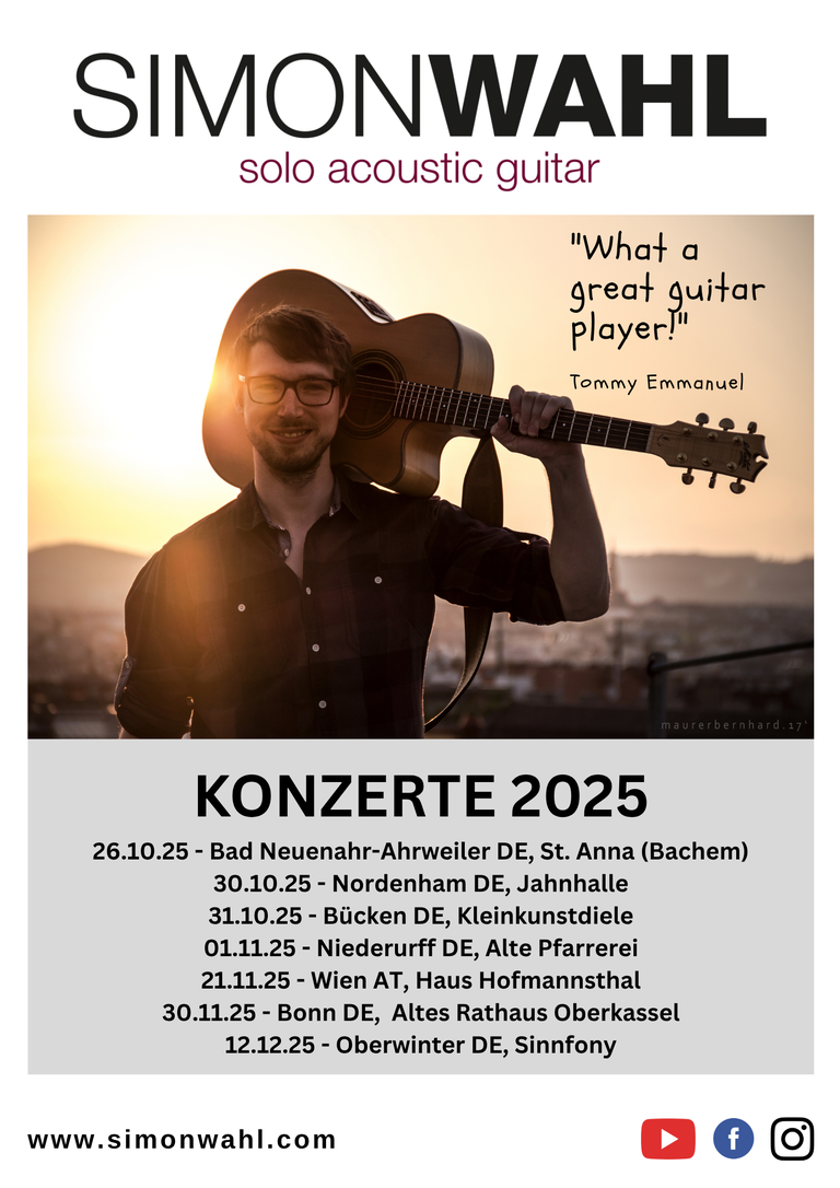 Mein Auftritt beim 14. Vienna Fingerstyle Festival wurde auch im Livestream übertragen. Die Videos werden nun nach und nach auf meinem YouTube Kanal www.youtube.com/simonwahl veröffentlicht.
